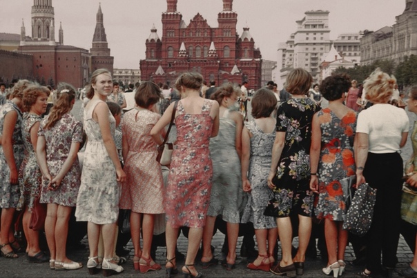 Москвички на Красной площади. 1981 год. Все яркие, в красивых платьях.