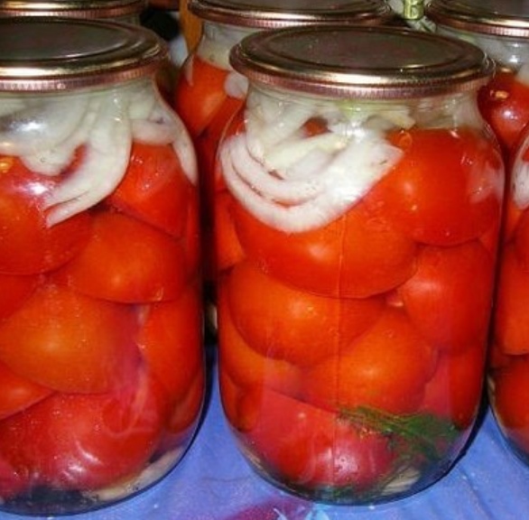 Сохрани и обязательно попробуй! ПОМИДОРЫ, КОНСЕРВИРОВАННЫЕ ПОЛОВИНКАМИ. ОЧЕНЬ ВКУСНЫЕ!!! НАДО НА 10 ЛИТРОВЫХ БАНОК: • Помидоры – 5-6 кг Показать полностью…• Лук репчатый (желательно фиолетовый) – 10 шт. • Перец болгарский сладкий – 4-5 шт. • Чеснок – 20 зубчиков • Листья хрена – 10 шт. • Зонтики укропа – 10 шт. • Лимонная кислота Для рассола ( на 10 банок примерно 6 литров рассола, лучше сделать чуть больше). На 1 литр воды: 70 сахара, 50 г соли. ГОТОВИМ: 1. Литровые банки хорошо помыть. 2. Помидоры, перец, листья хрена, укроп хорошо помыть. Чеснок, лук, морковь почистить. 4. Перец порезать кольцами или разрезать 1 перец на 8 частей. 5. Чеснок почистить, лук почистить и порезать кольцами. 6. Теперь укладываем все овощи в банки. На дно банки кладем 1 зонтик укропа, половину листа хрена, 2 зубчика чеснока. 7. Помидоры режем пополам и укладываем в банку, чередуя помидоры с кольцами репчатого лука. 8. Перец укладываем по краям банки. Накрываем верхний слой помидоров с луком кусочком листа хрена. 9. Так укладываем все 10 банок. 10. Заливаем кипятком на 20 минут. 11. В это время варим рассол из воды соли и сахара. 12. Через 20 минут выливаем горячую воду из банок, кладем по 1/3 чайной ложки лимонной кислоты в каждую банку. 13. Заливаем рассолом и закатываем. 14. Переворачиваем банку крышкой вниз, ставим на пол и накрываем чем-то тёплым на 5 часов.